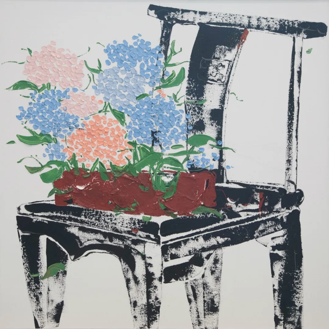 他的创作,从“山外山”的苍劲到“繁花”的绚烂,从“器系列”的朴拙到“昆虫系列”的灵动,无一不是在寻常物象中,挖掘不寻常的精神能量。其笔下的太湖石,嶙峋中见元气;其所绘的杯盏器皿,静默中载厚史;其勾勒的花草虫鱼,既是对自然生命的礼赞,亦是对东方禅意的当代诠释。